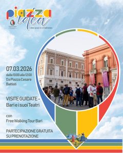 Domani, Sabato 7 marzo sarà la volta di “Bari e i suoi Teatri” dalle 10:00 alle 12:00. Il percorso guidato si concentrerà sui principali teatri della città, esplorando la loro storia, architettura e il ruolo che hanno ricoperto nella cultura e nell’intrattenimento della città. Anche questo evento, su prenotazione e con un limite di 20 partecipanti, offrirà un’opportunità per conoscere la Bari teatrale in modo diverso.